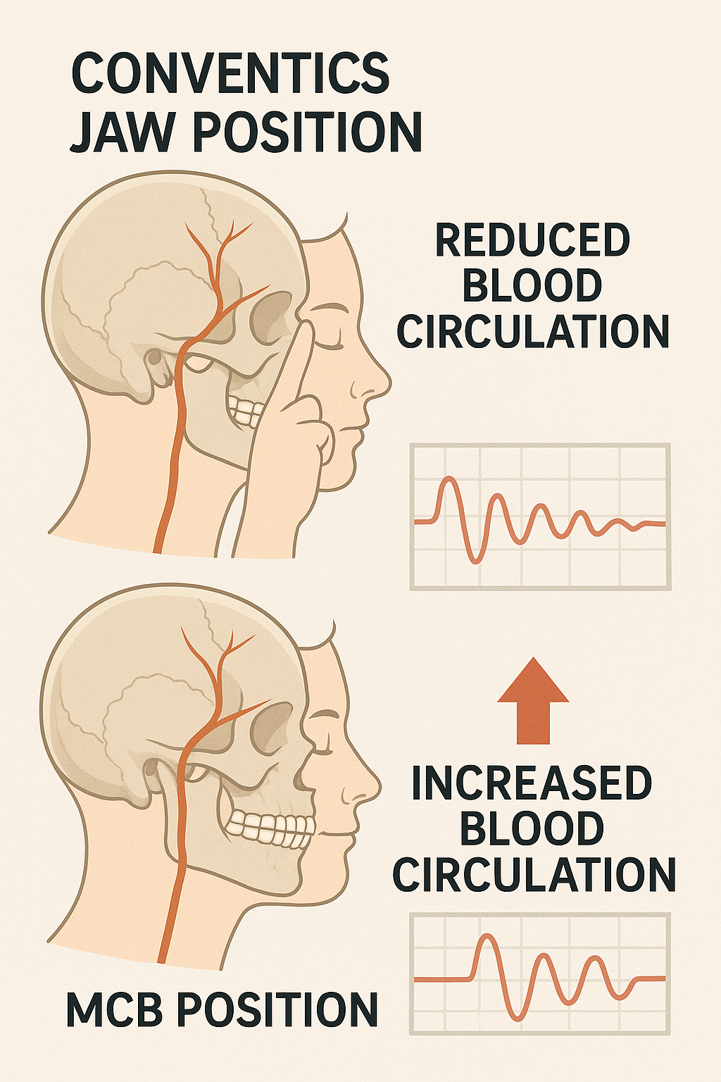 On the other hand, when the mandible is positioned in the MCB position, a strong pulse can clearly be felt.